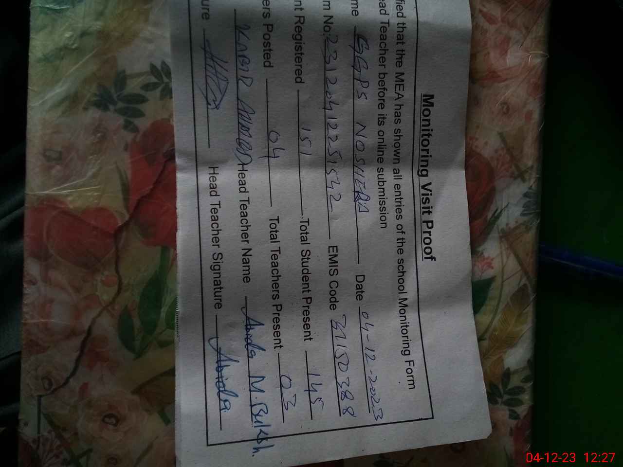 | EMIS Code: 31150388 | Name of School: GGPS NOSHERA | |||