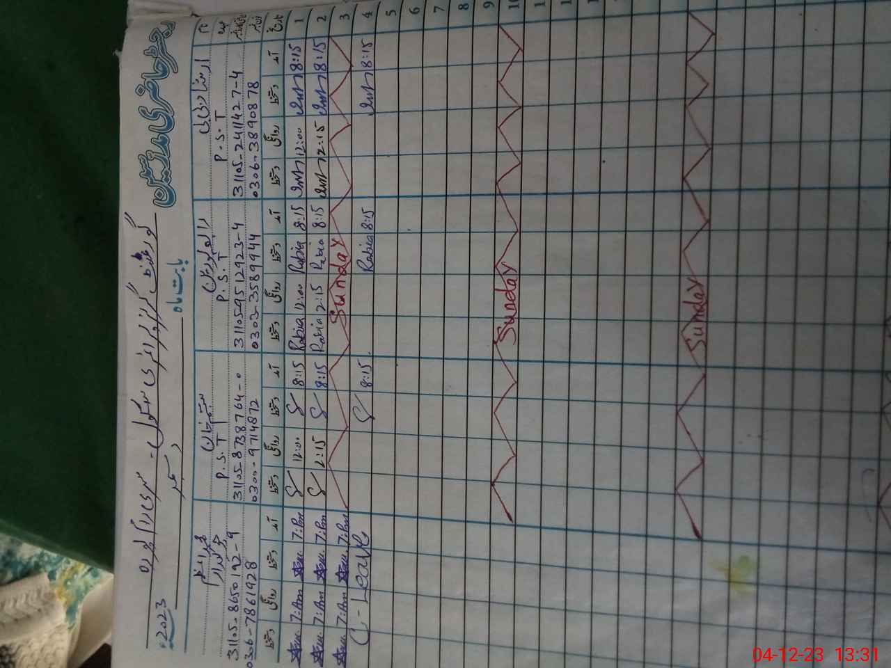 | Name: IR**** BI**** Designation: (School Headmaster's/Headmistress's) P S T Phone/Cell Number: 03**** |