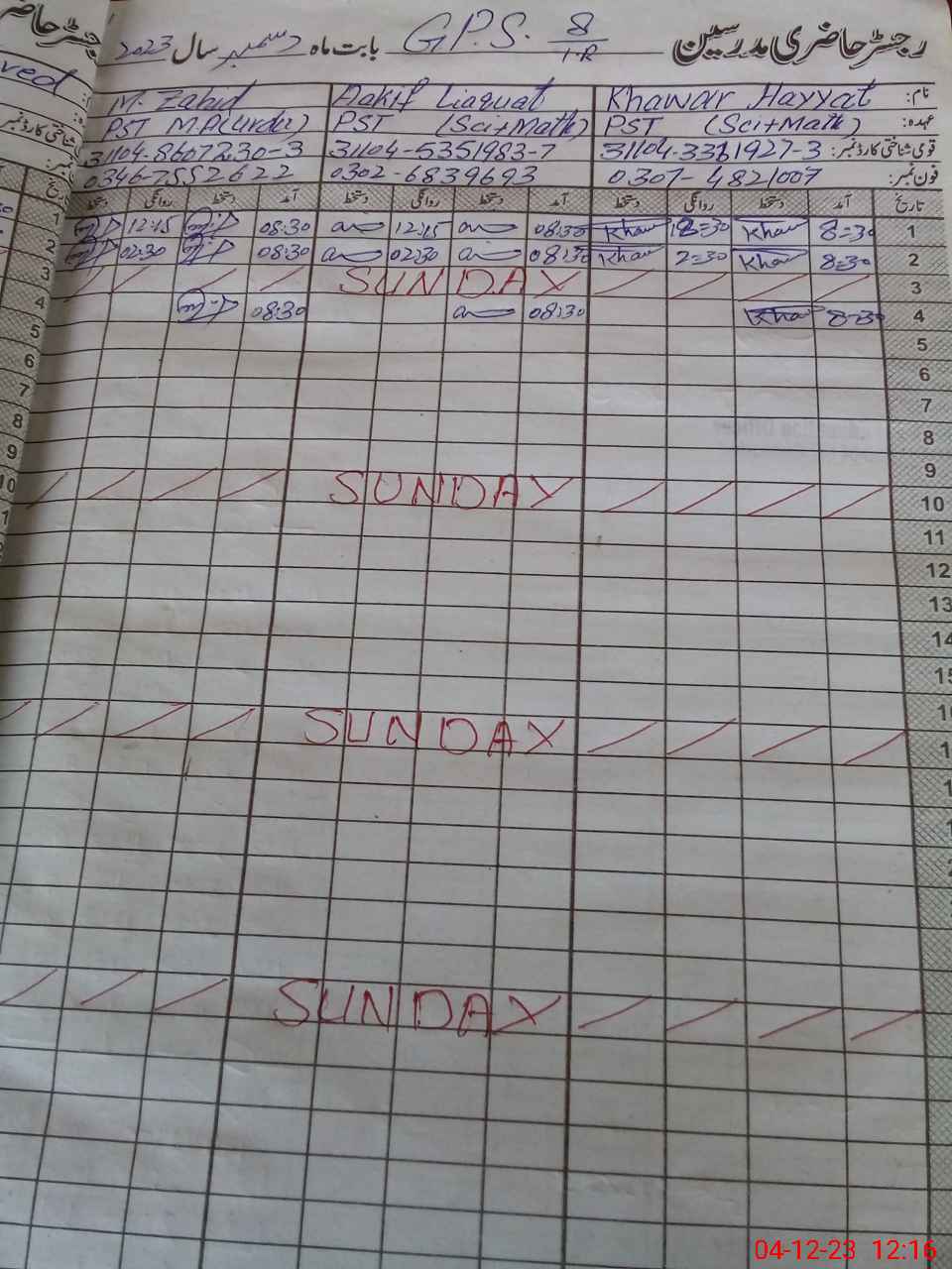 | Name: KH**** HA**** Designation: (School Headmaster's/Headmistress's) ESE SCI MATH Phone/Cell Number: 03**** |
