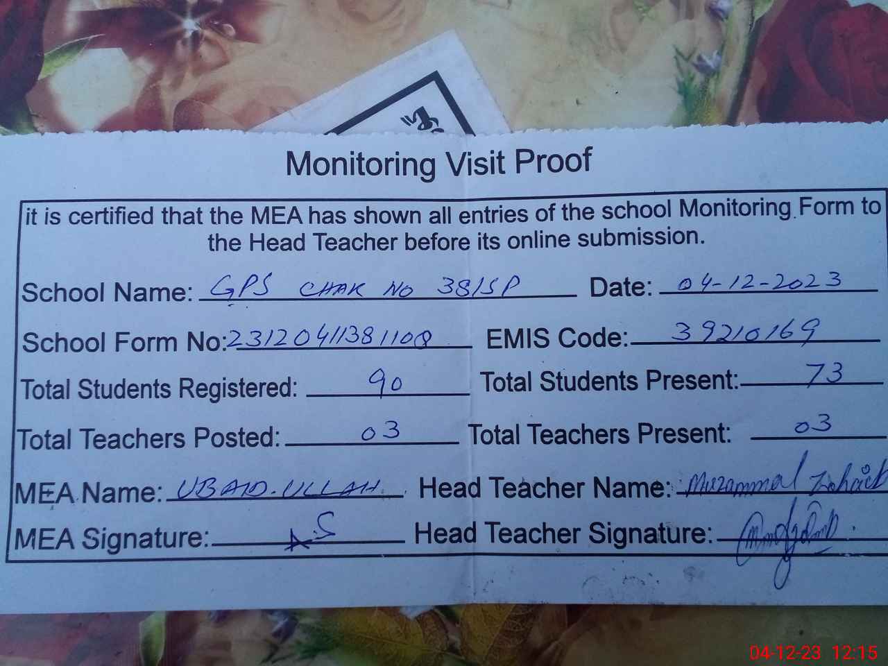 | EMIS Code: 39210169 | Name of School: GPS 38 SP | |||