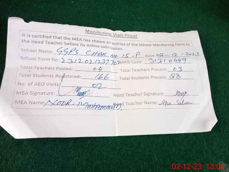 | EMIS Code: 31310449 | Name of School: GGPS CHAK NO. 15/P | |||