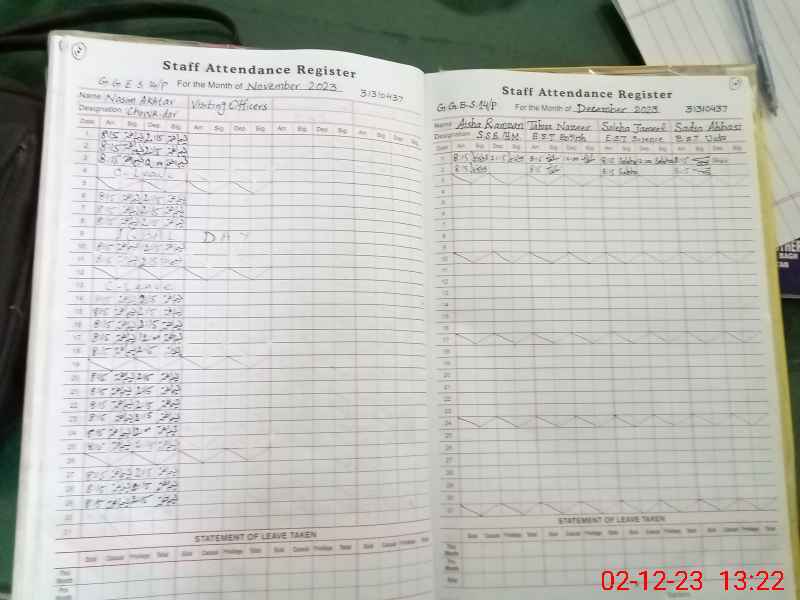 | CNIC | Full Name | Designation | R/C | Absence During Last Calender Month |