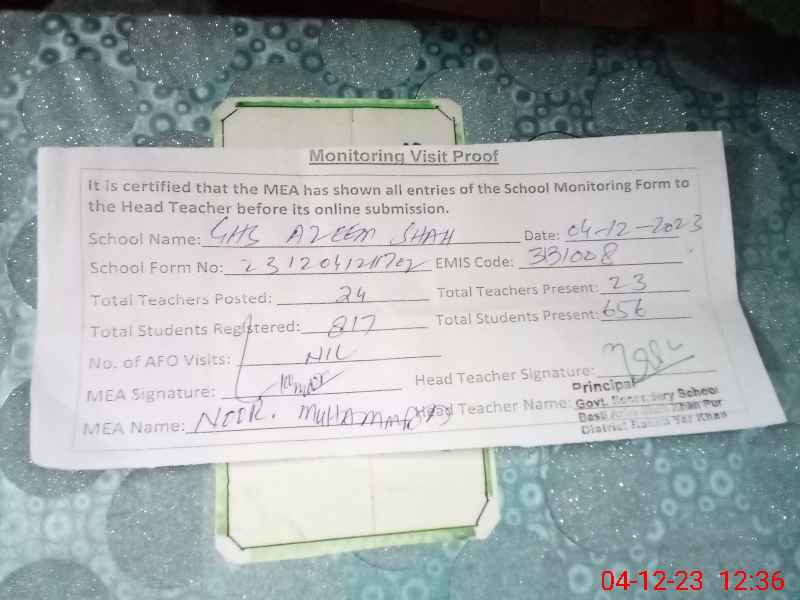 | EMIS Code: 31310008 | Name of School: GHS BASTI AZIM SHAH | |||