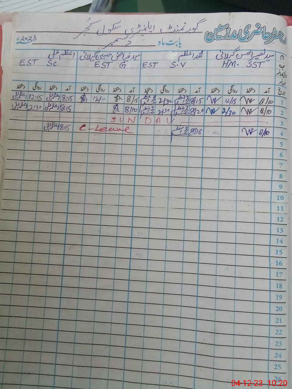 | Name: Sy**** Na**** Ha**** Sh**** Gi**** Designation: (School Headmaster's/Headmistress's) S.S.T.(general) Phone/Cell Number: 03**** |