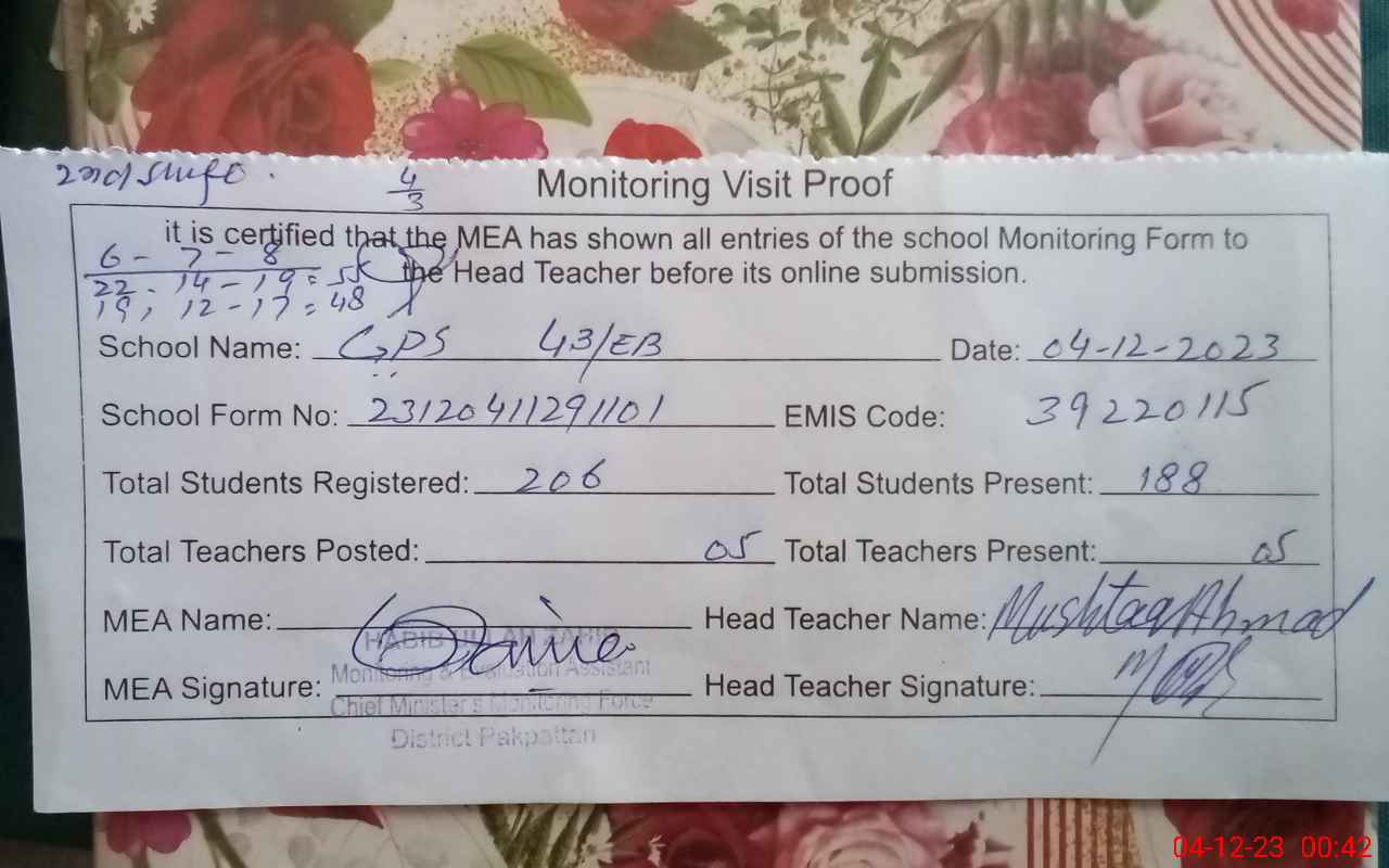 | EMIS Code: 39220115 | Name of School: GES 43 EB | |||