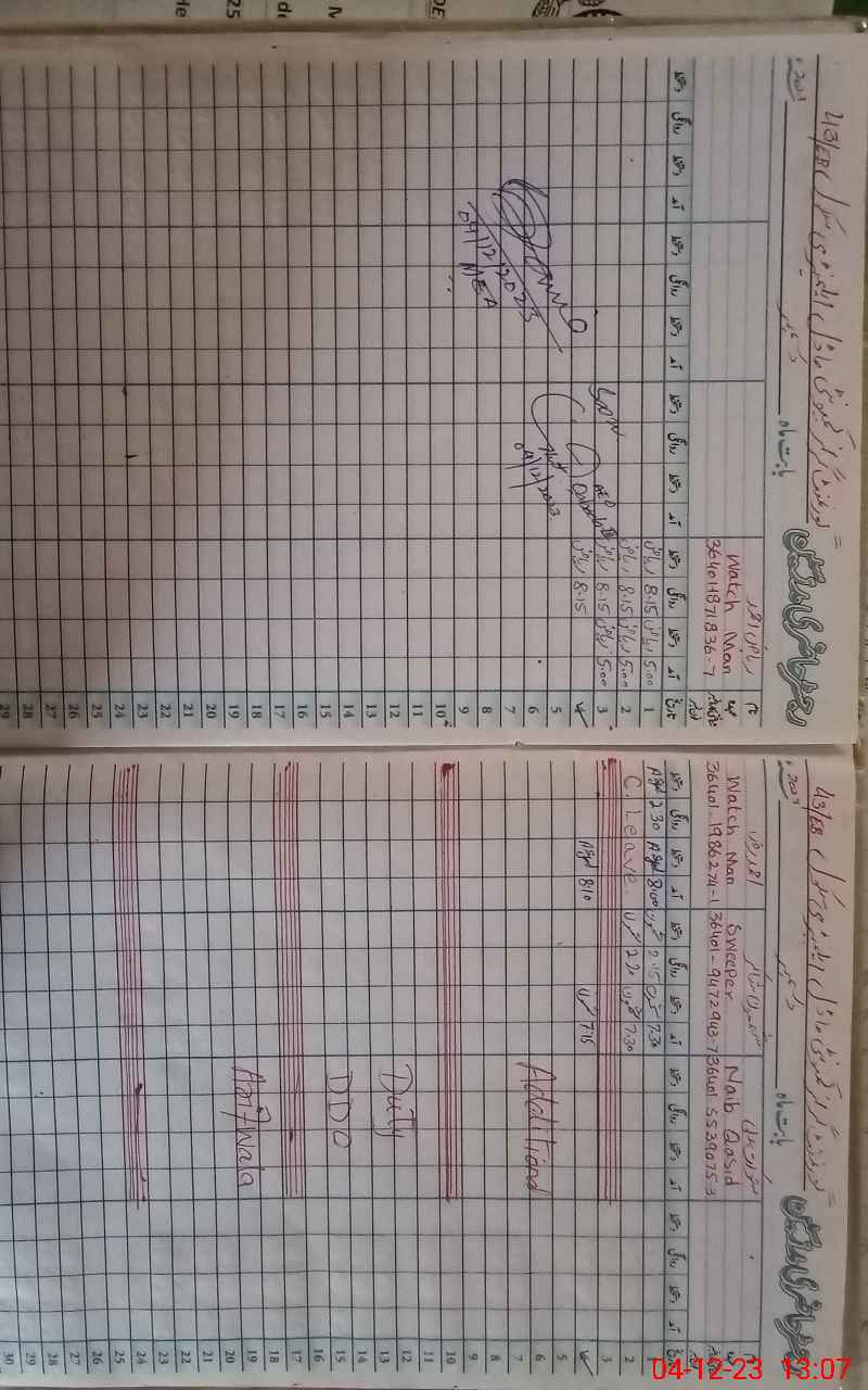 | CNIC | Full Name | Designation | R/C | Absence During Last Calender Month |