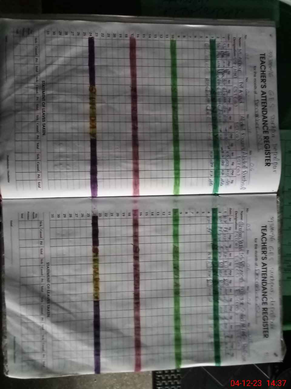 | Leave | Duty | Absent | Maternity | Medical | Ex- Pak |