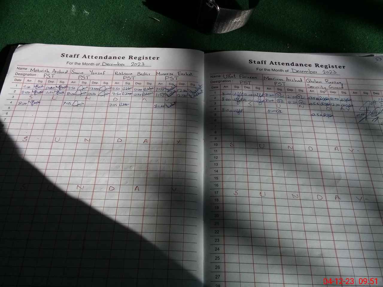 | CNIC | Full Name | Designation | R/C | Absence During Last Calender Month |