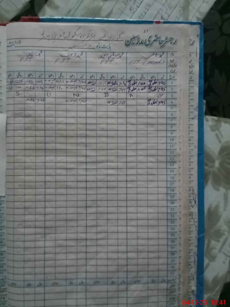 | CNIC | Full Name | Designation | R/C | Absence During Last Calender Month |