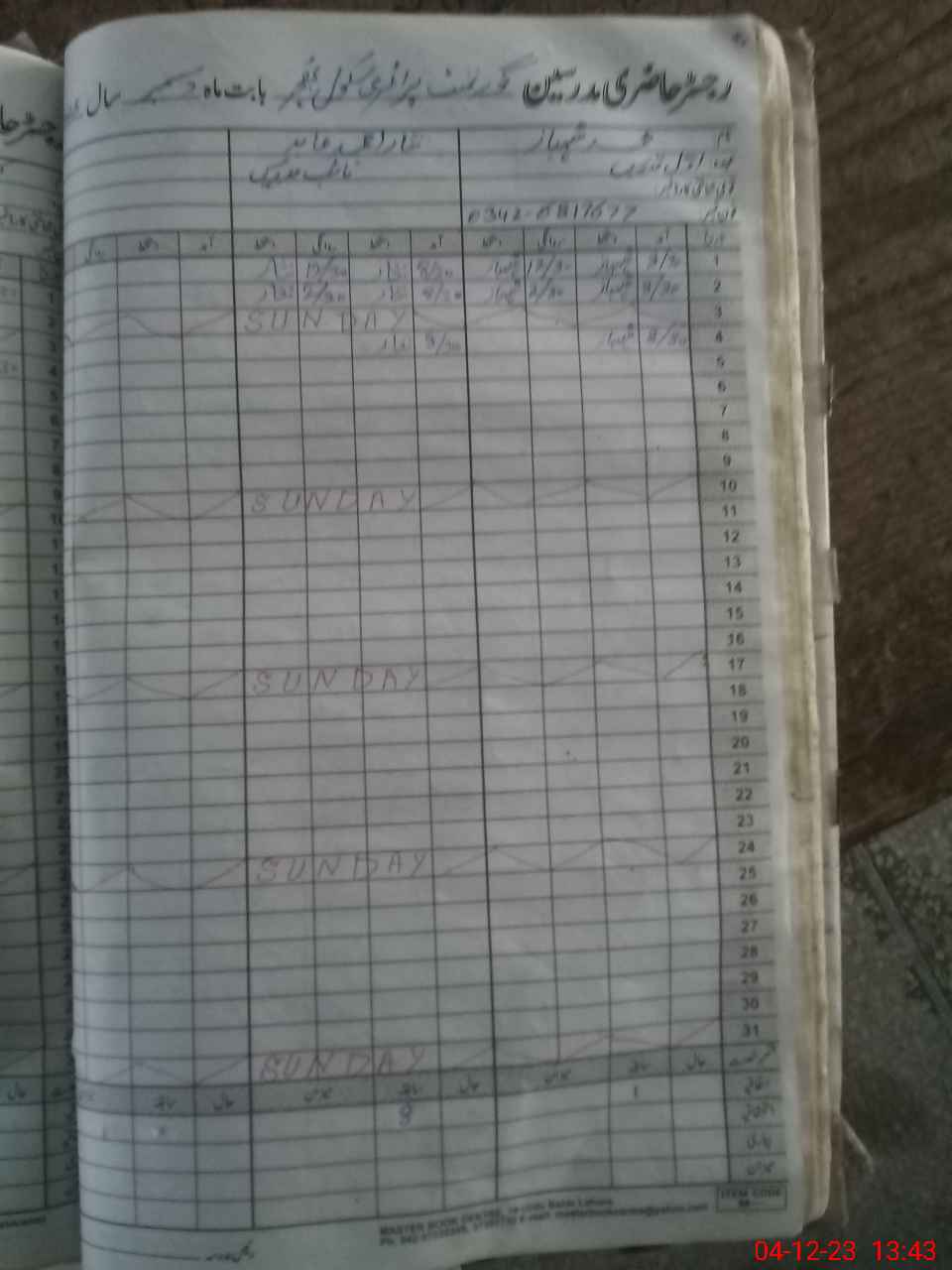 | CNIC | Full Name | Designation | R/C | Absence During Last Calender Month |