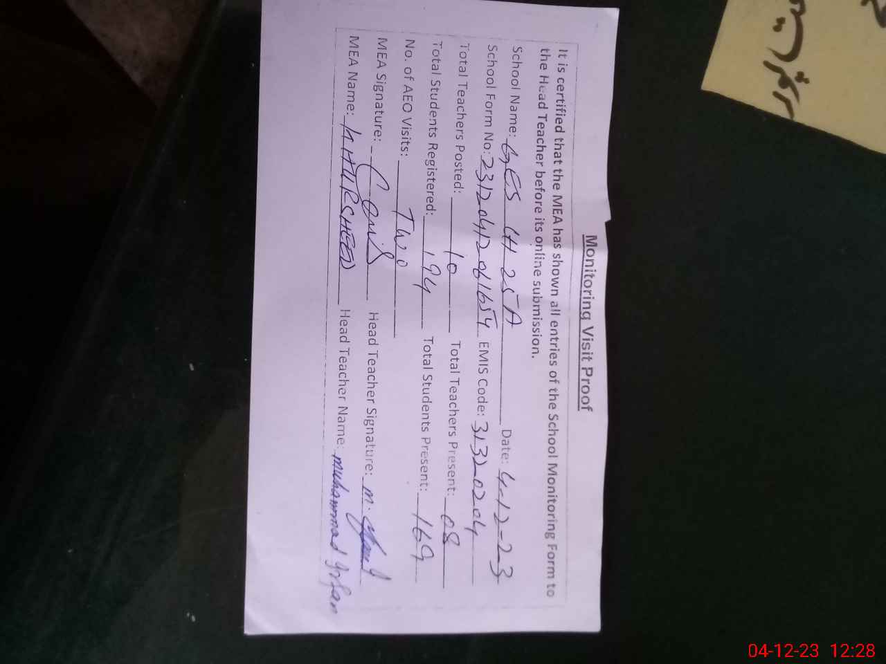 | EMIS Code: 31320204 | Name of School: GES CHAK 25/A | |||