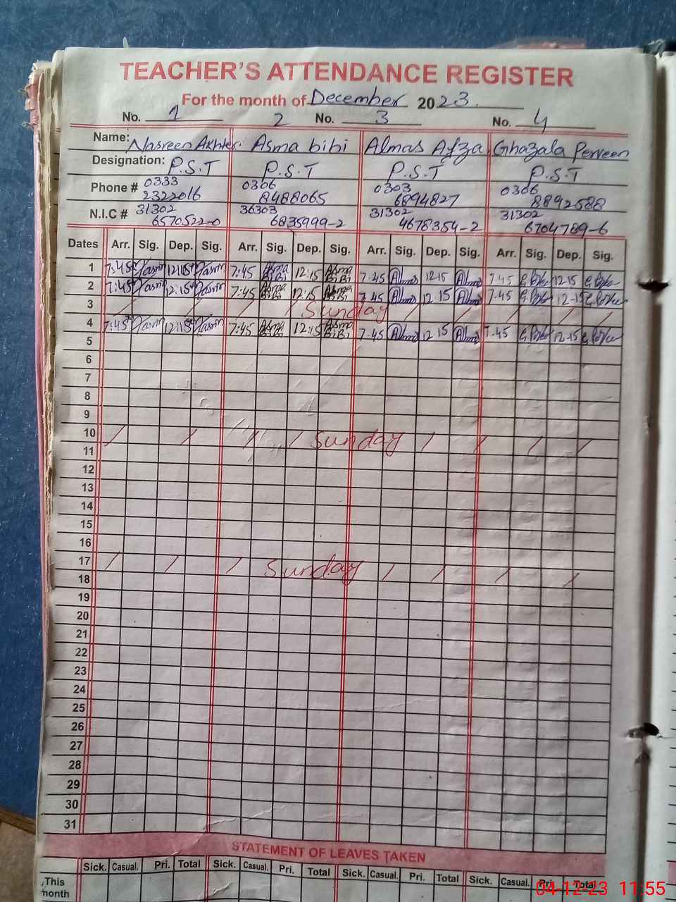 | Name: NA**** AK**** Designation: (School Headmaster's/Headmistress's) PST Phone/Cell Number: 03**** |
