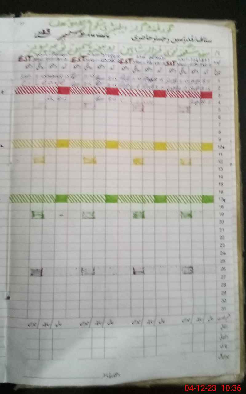 | CNIC | Full Name | Designation | R/C | Absence During Last Calender Month |