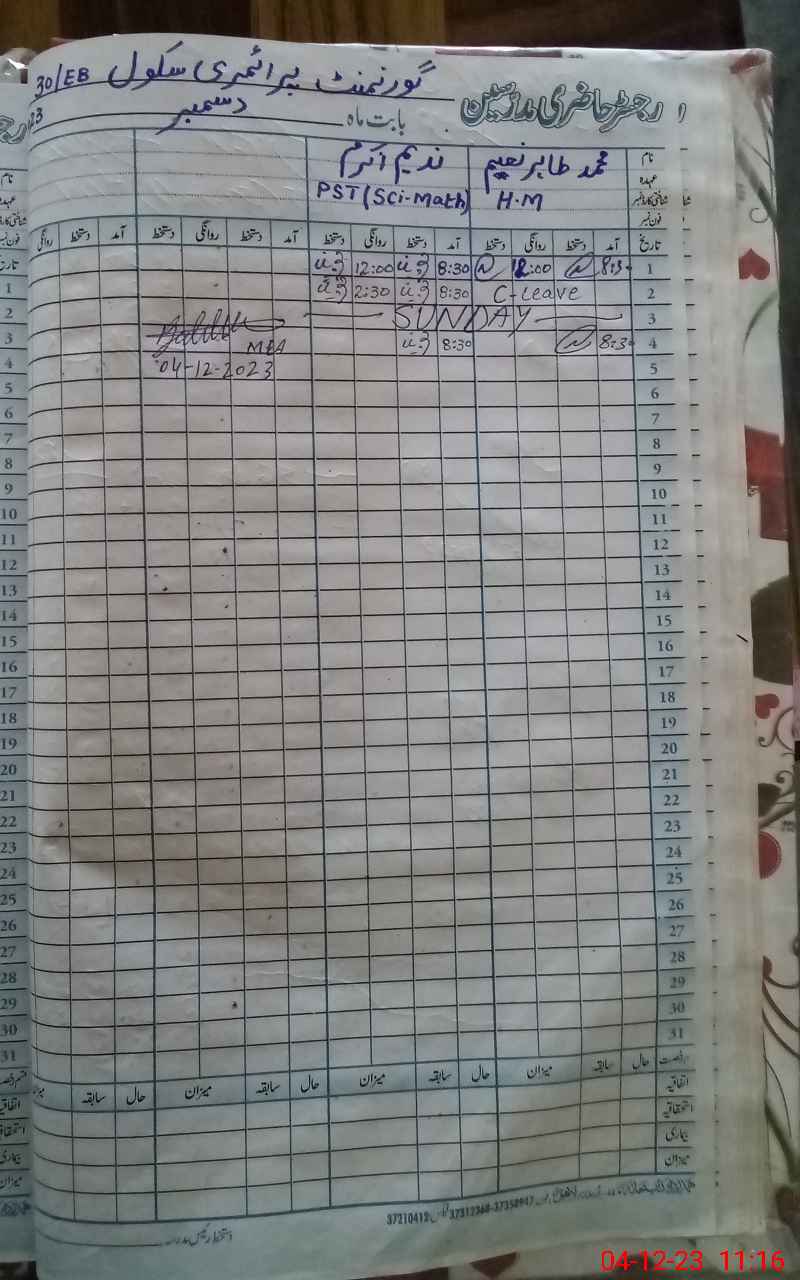 | Name: MU**** TA**** NA**** Designation: (School Headmaster's/Headmistress's) PST Phone/Cell Number: 03**** |