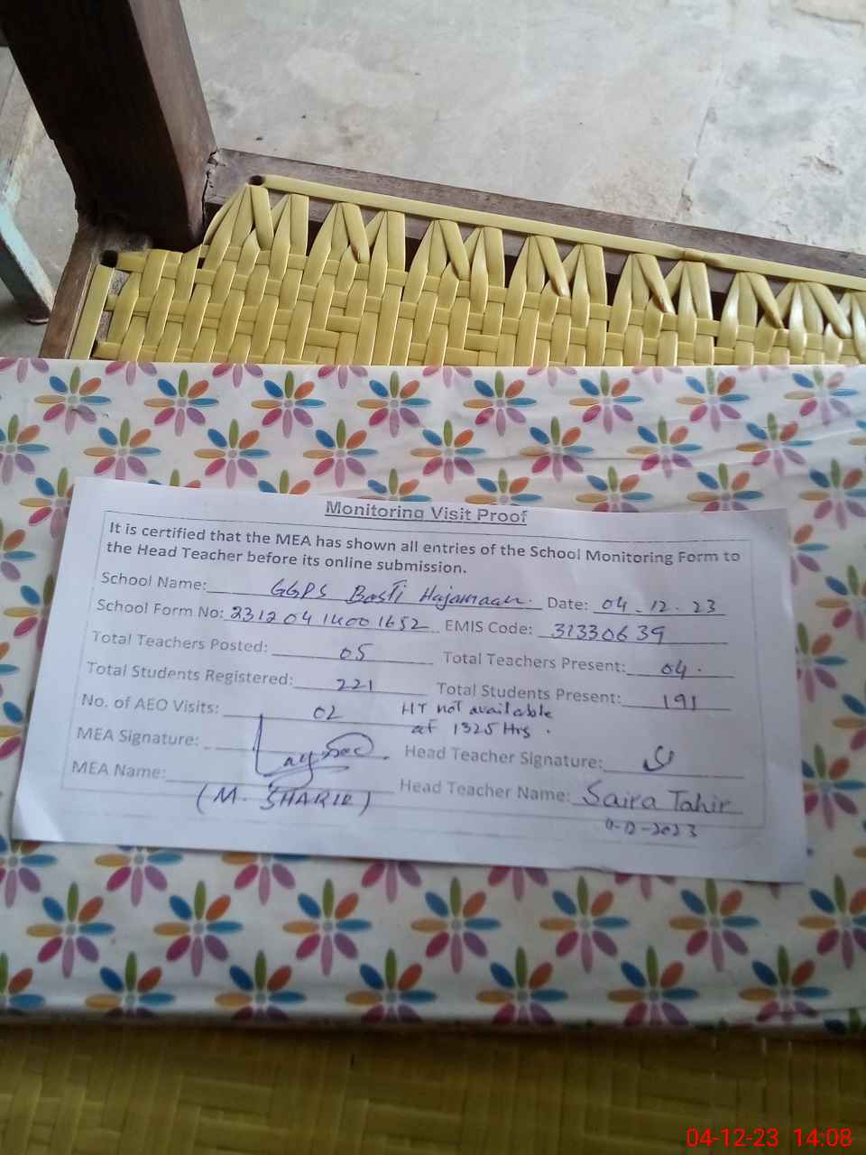 | EMIS Code: 31330639 | Name of School: GGPS BASTI HAJAMAAN | |||