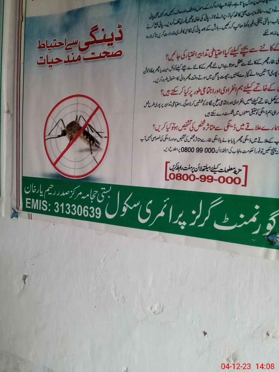 | District: RAHIMYAR KHAN | Tehsil: RAHIMYAR KHAN | Markaz: SADAR RYK - FEMALE | Level: Primary | |