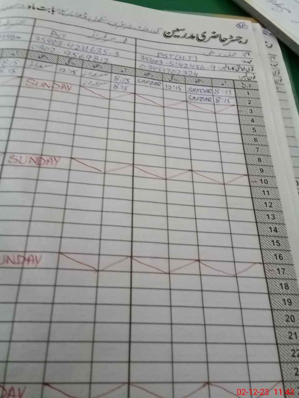 | CNIC | Full Name | Designation | R/C | Absence During Last Calender Month |