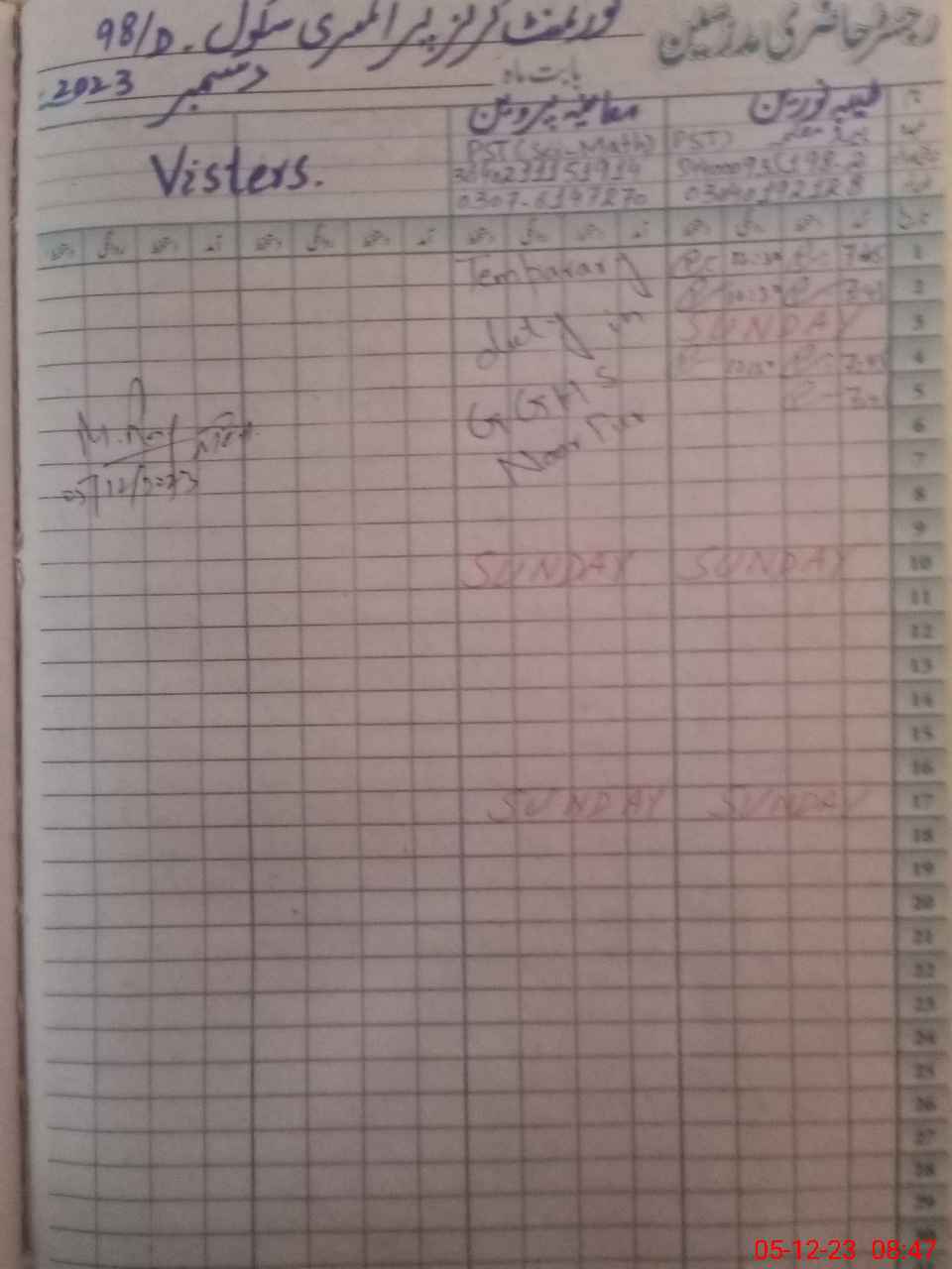 | Name: Mu**** Pe**** Designation: (School Headmaster's/Headmistress's) PST Phone/Cell Number: 03**** |