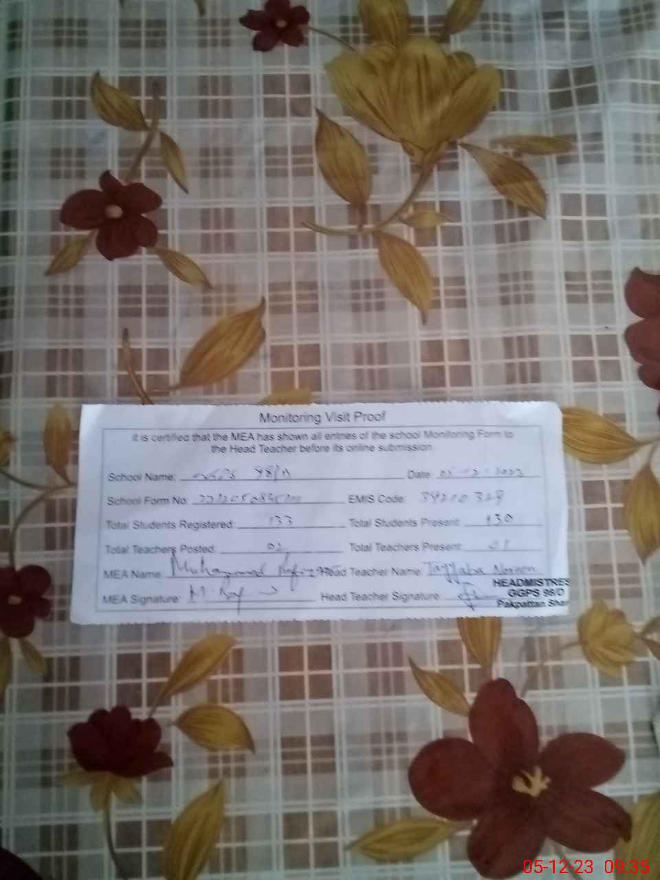 | EMIS Code: 39210329 | Name of School: GGPS 98 D | |||