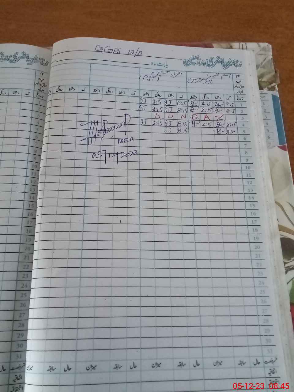 | CNIC | Full Name | Designation | R/C | Absence During Last Calender Month |