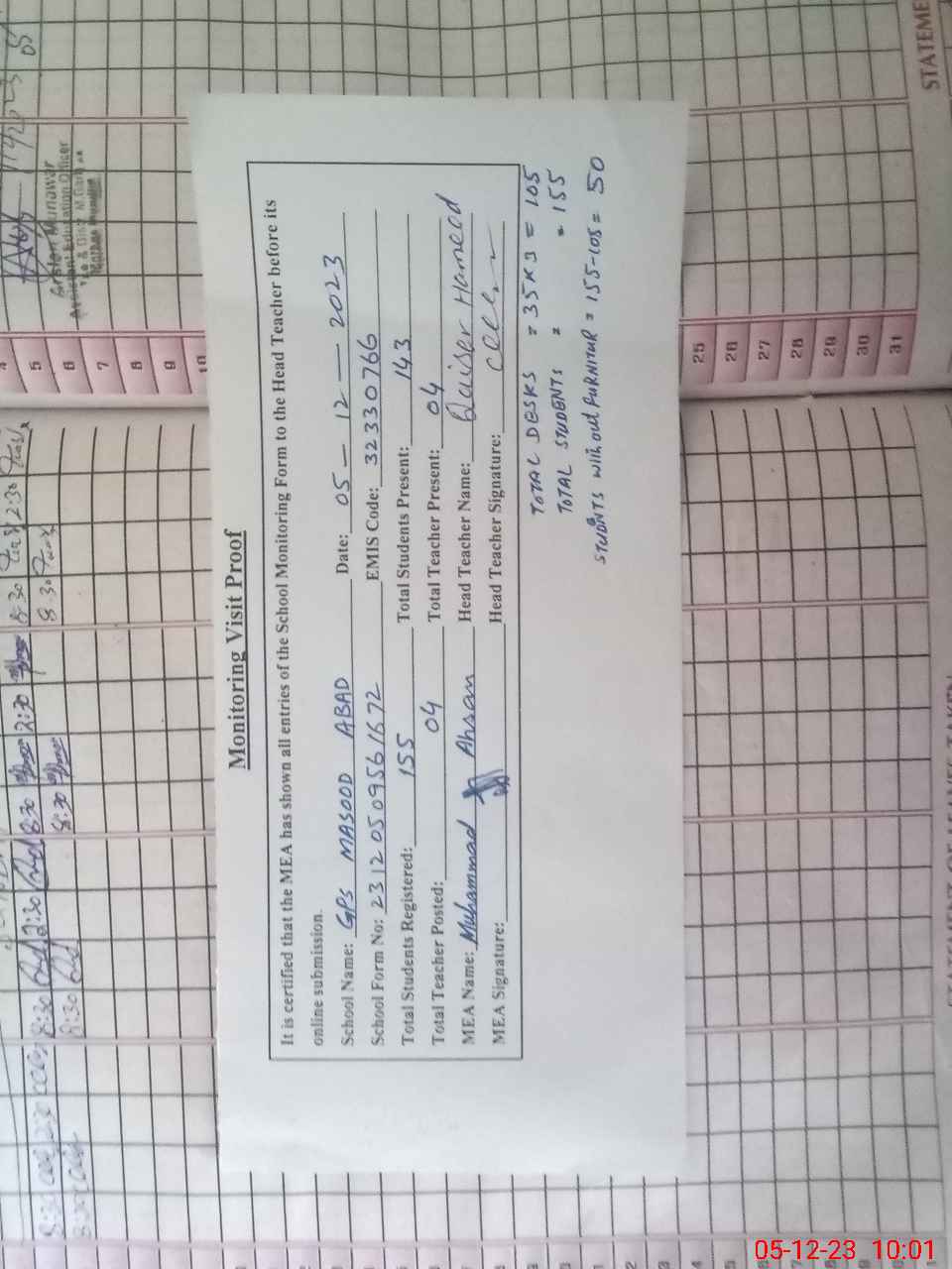 | EMIS Code: 32330766 | Name of School: GPS MASOOD ABAD | |||