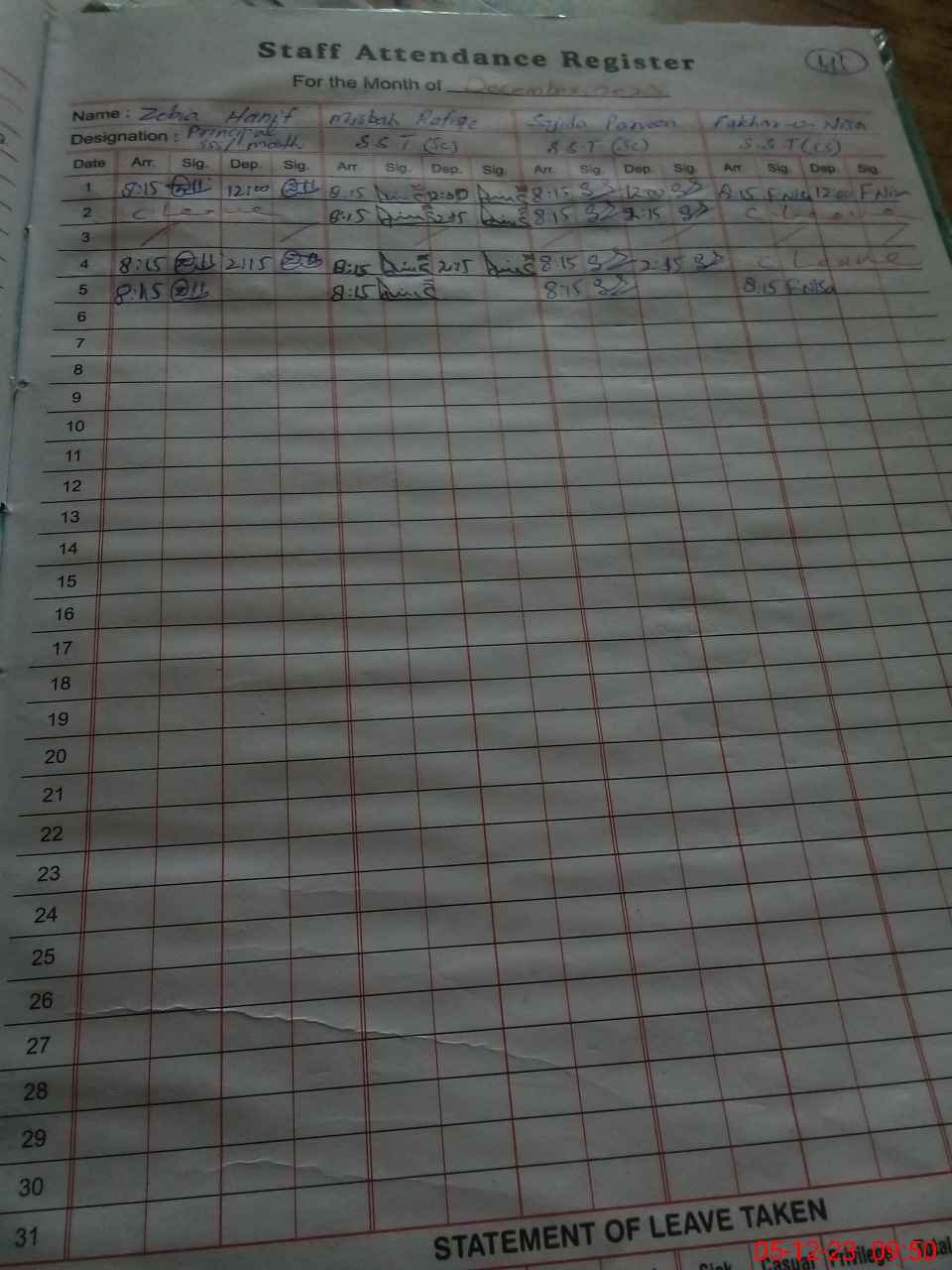 | No. of Students Present - Female | 0 | 0 | 0 | 0 | 0 | 0 | 0 | 0 | 0 | 0 | 0 | 0 | 0 | 0 | 0 | 0 |
