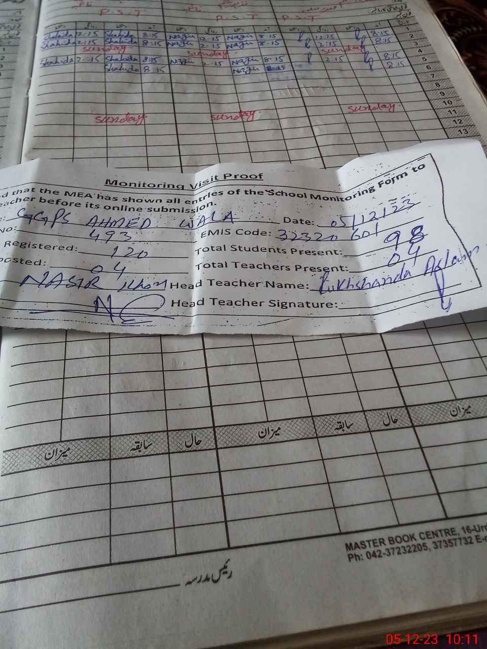 | Attendance Register | Head Teacher | MEA with School | Visit Proof |