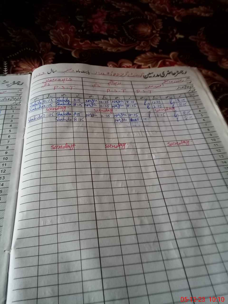 | CNIC | Full Name | Designation | R/C | Absence During Last Calender Month |