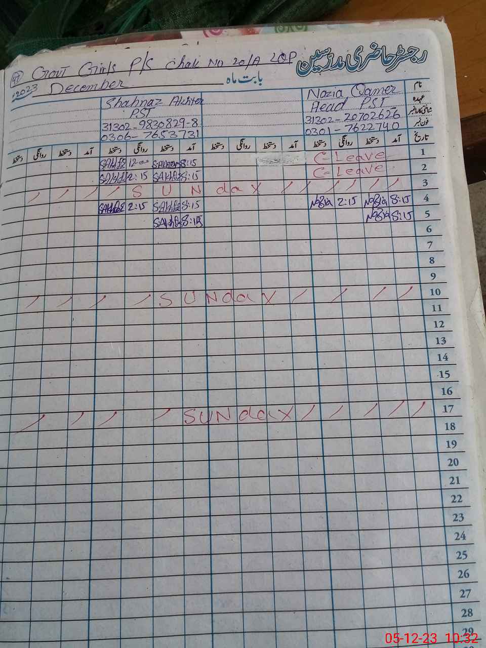 | Name: NA**** QA**** Designation: (School Headmaster's/Headmistress's) PST/PTC/JV Phone/Cell Number: 03**** |