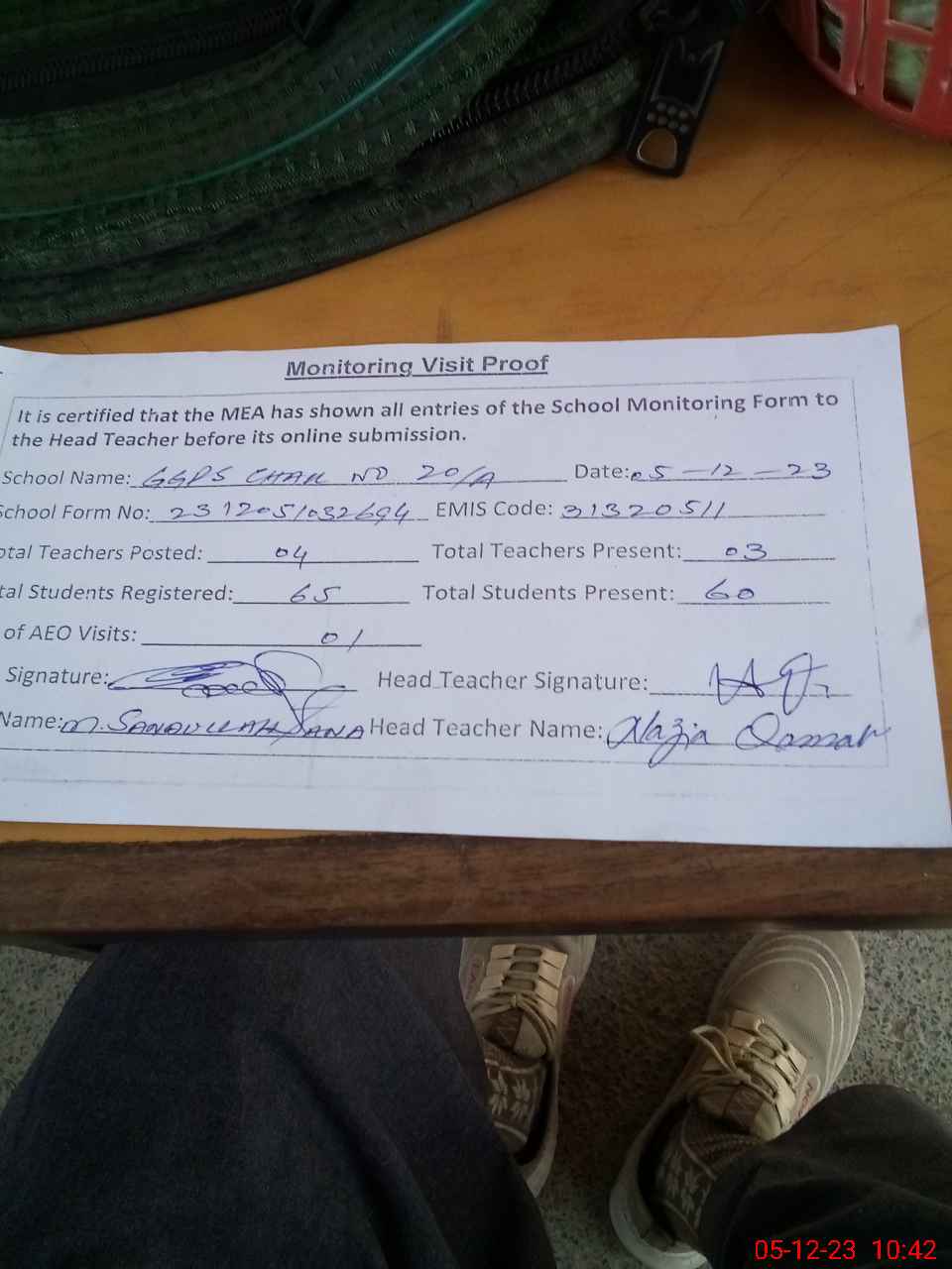 | EMIS Code: 31320511 | Name of School: GGPS CHAK NO.20/A | |||