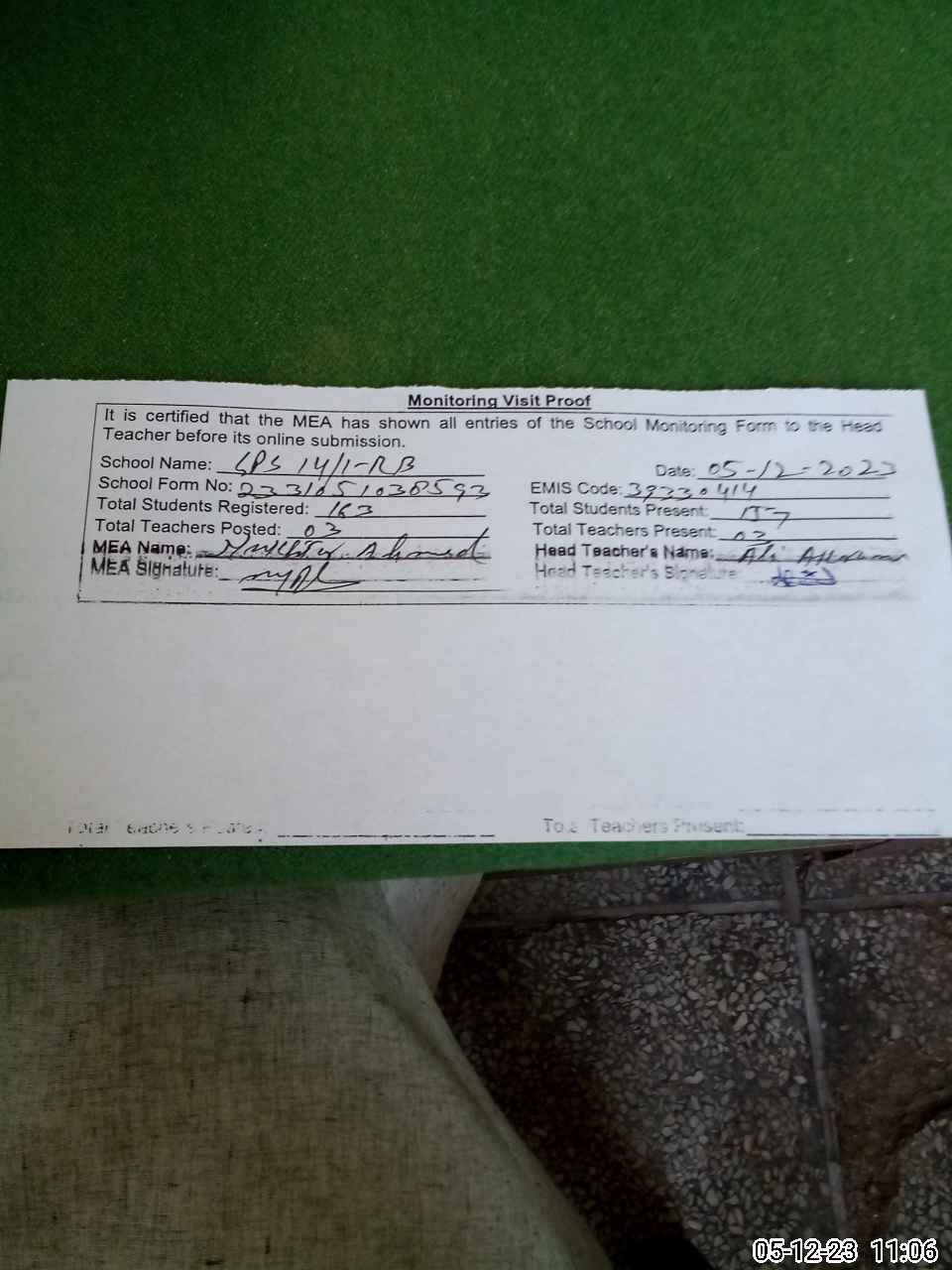 | EMIS Code: 39330414 | Name of School: GPS CHAK NO. 14/1-RB | |||