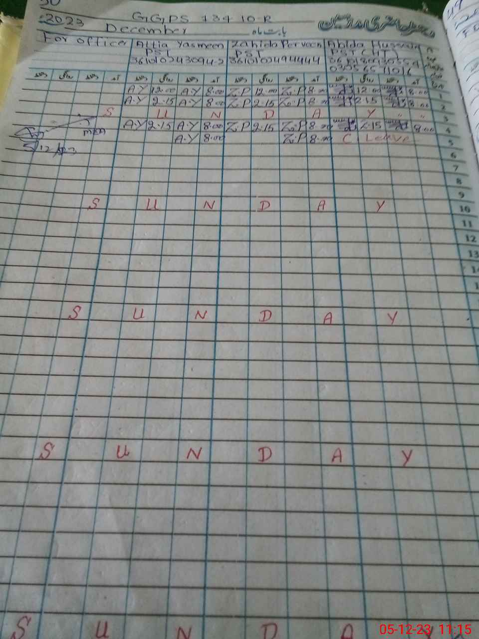 | CNIC | Full Name | Designation | R/C | Absence During Last Calender Month |