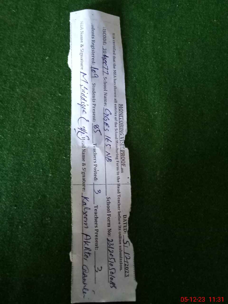 | Attendance Register | Head Teacher | MEA with School | Visit Proof |