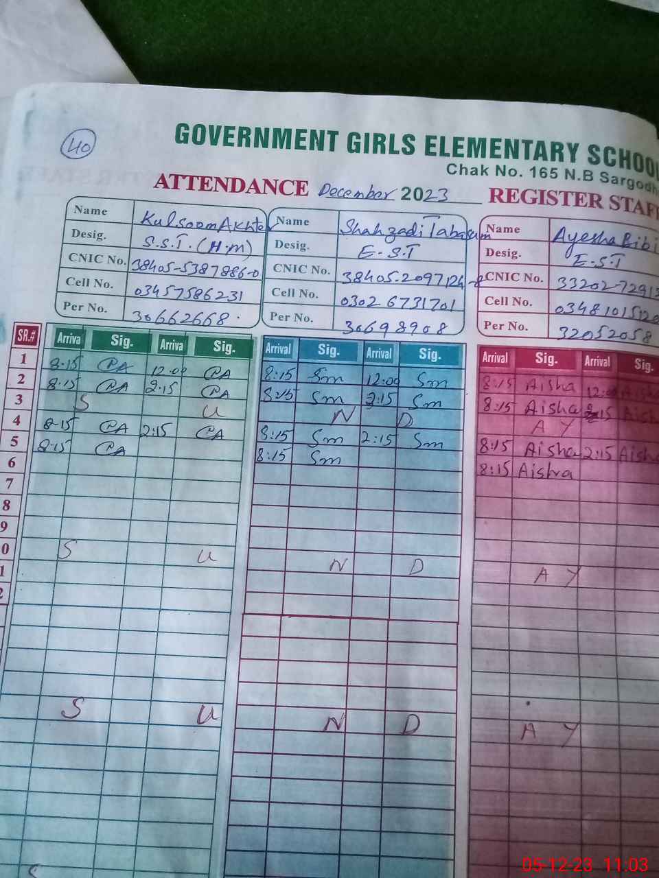 | Name: KA**** AK**** Designation: (School Headmaster's/Headmistress's) SST(Gen) Phone/Cell Number: 03**** |