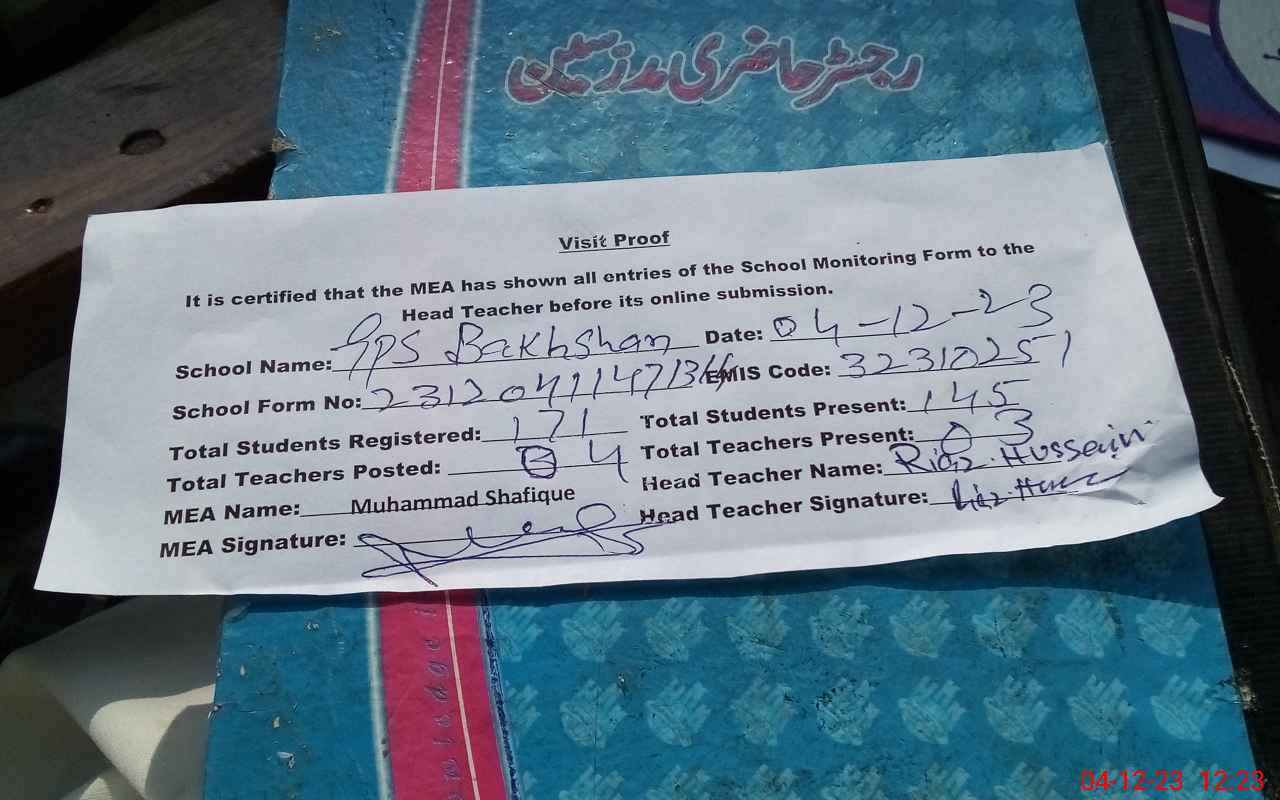 | EMIS Code: 32310251 | Name of School: GPS BAKHSHAN WALA | |||