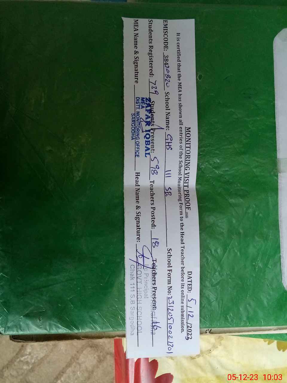 | EMIS Code: 38420820 | Name of School: GHS CHAK NO.111 SB | |||