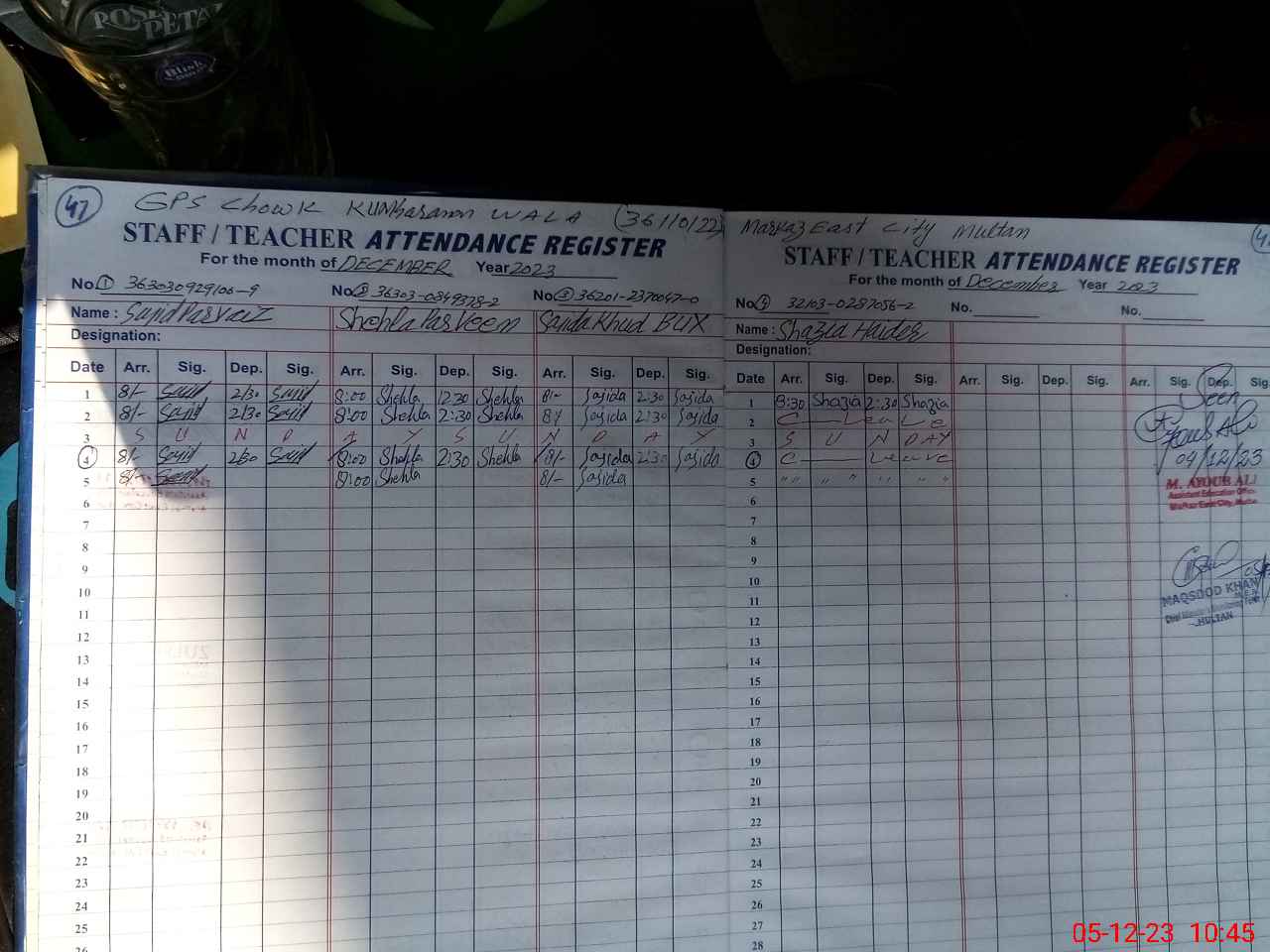 | Name: SA**** PE**** Designation: (School Headmaster's/Headmistress's) PST Phone/Cell Number: 03**** |