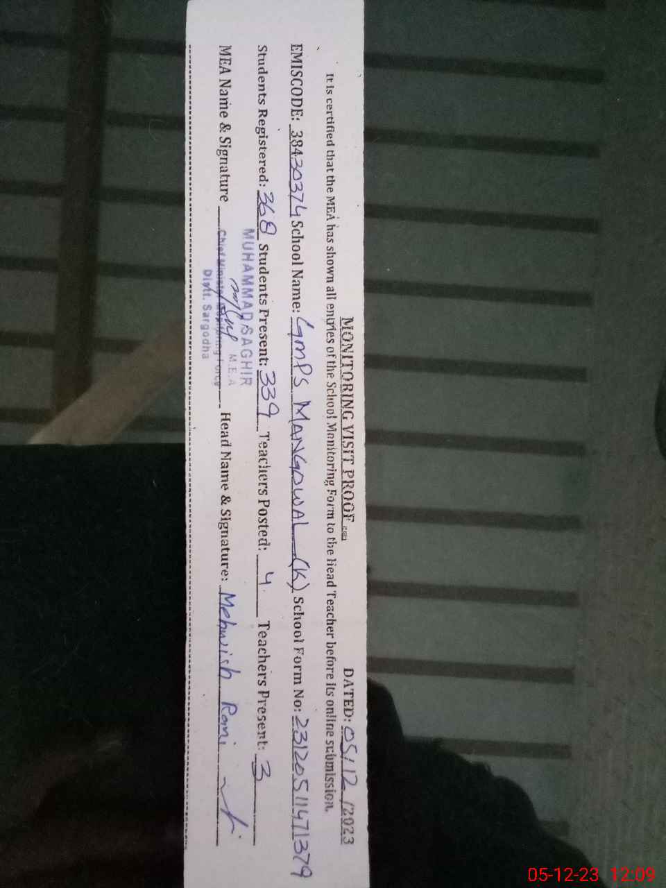 | EMIS Code: 38430374 | Name of School: GMPS MANGOWAL KALAN | |||