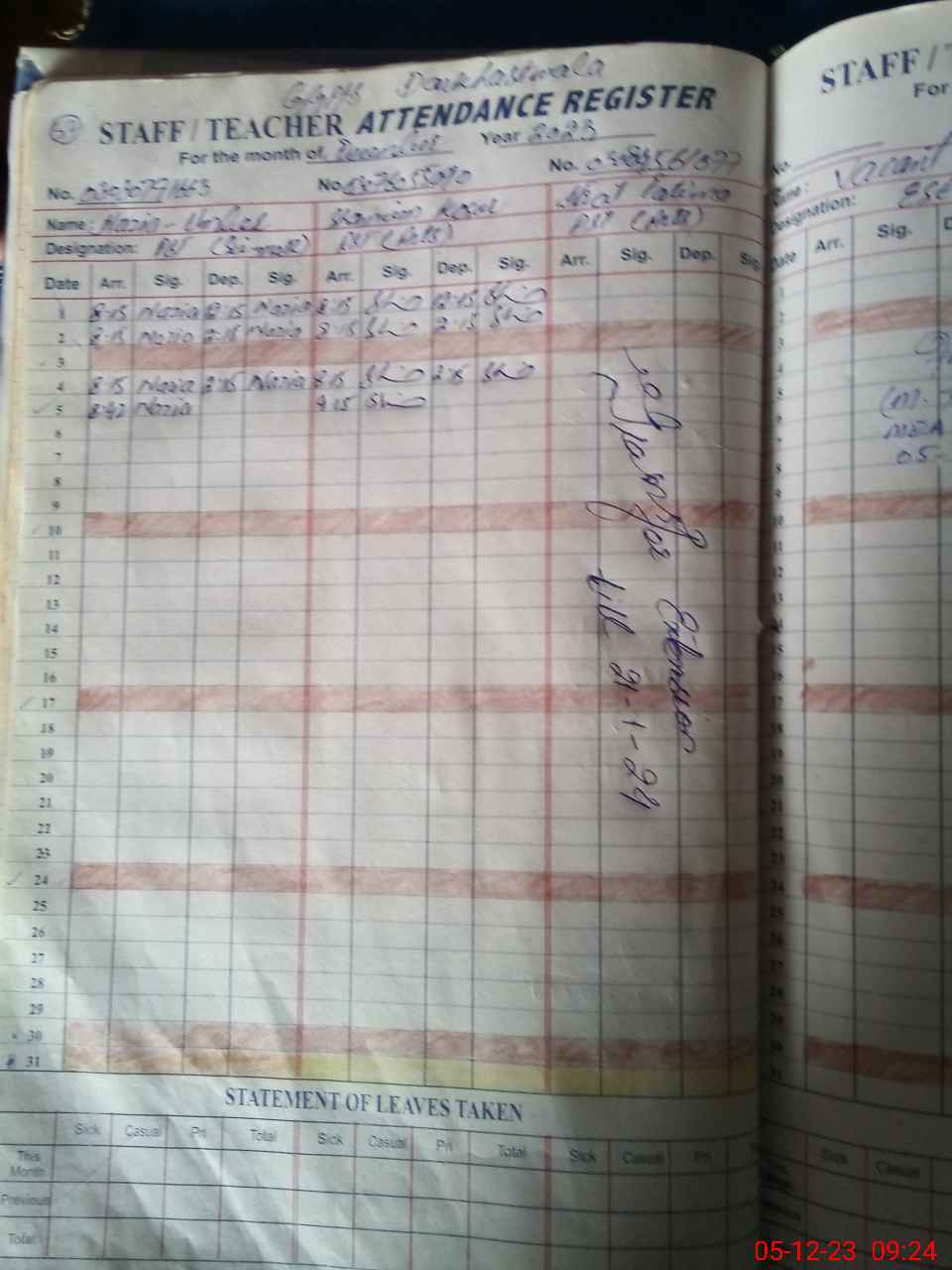 | CNIC | Full Name | Designation | R/C | Absence During Last Calender Month |