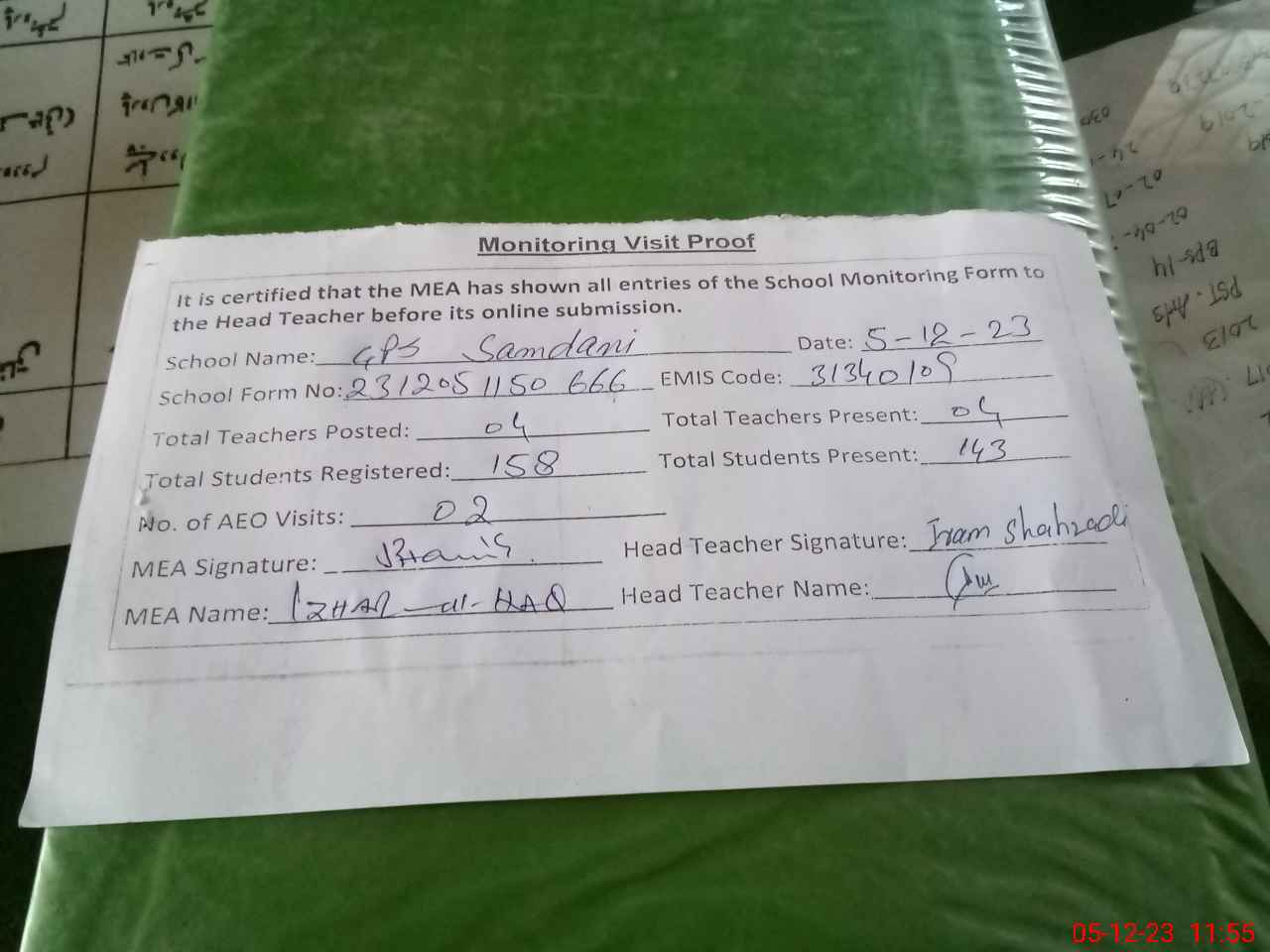 | EMIS Code: 31340109 | Name of School: GPS SAMDANEE | |||