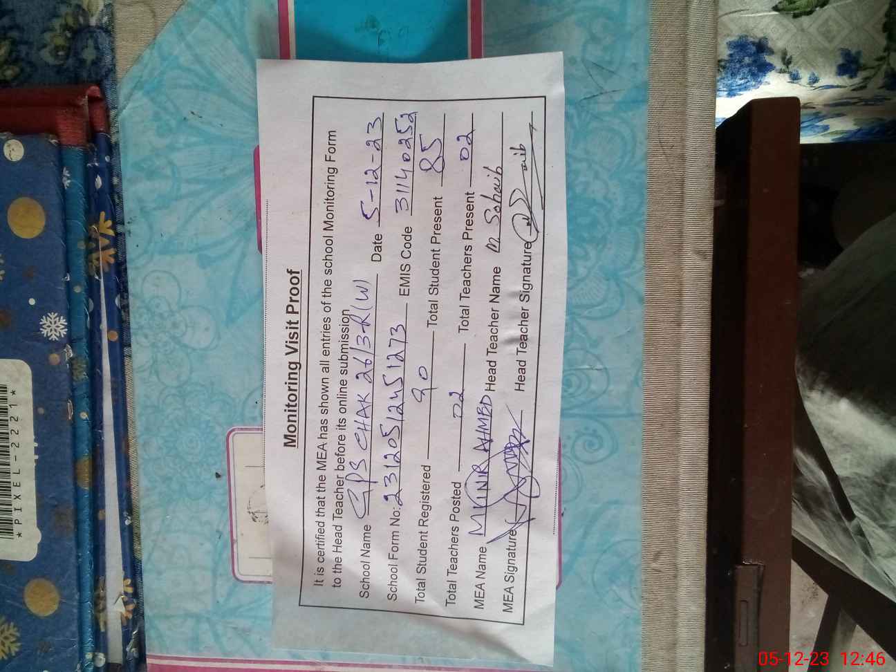| EMIS Code: 31140252 | Name of School: GPS CHAK NO 26/3-R W | |||
