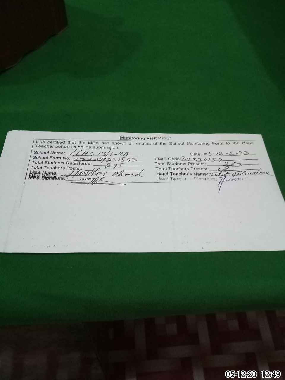 | EMIS Code: 39330154 | Name of School: GGHS CHAK NO.13/1R | |||