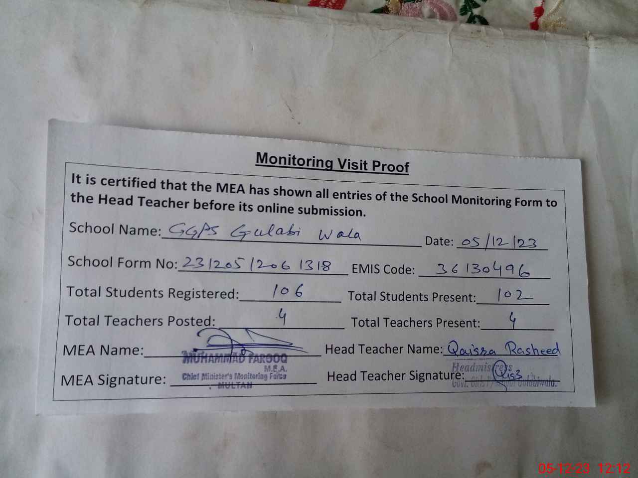 | EMIS Code: 36130496 | Name of School: GGPS GULABI WALA BASTI NOOR PUR | |||