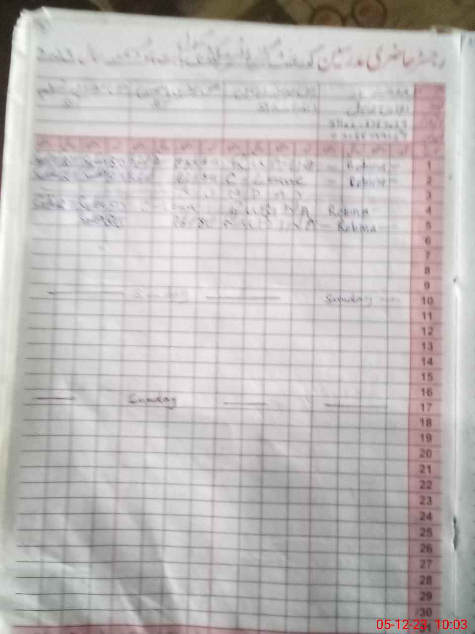 | CNIC | Full Name | Designation | R/C | Absence During Last Calender Month |