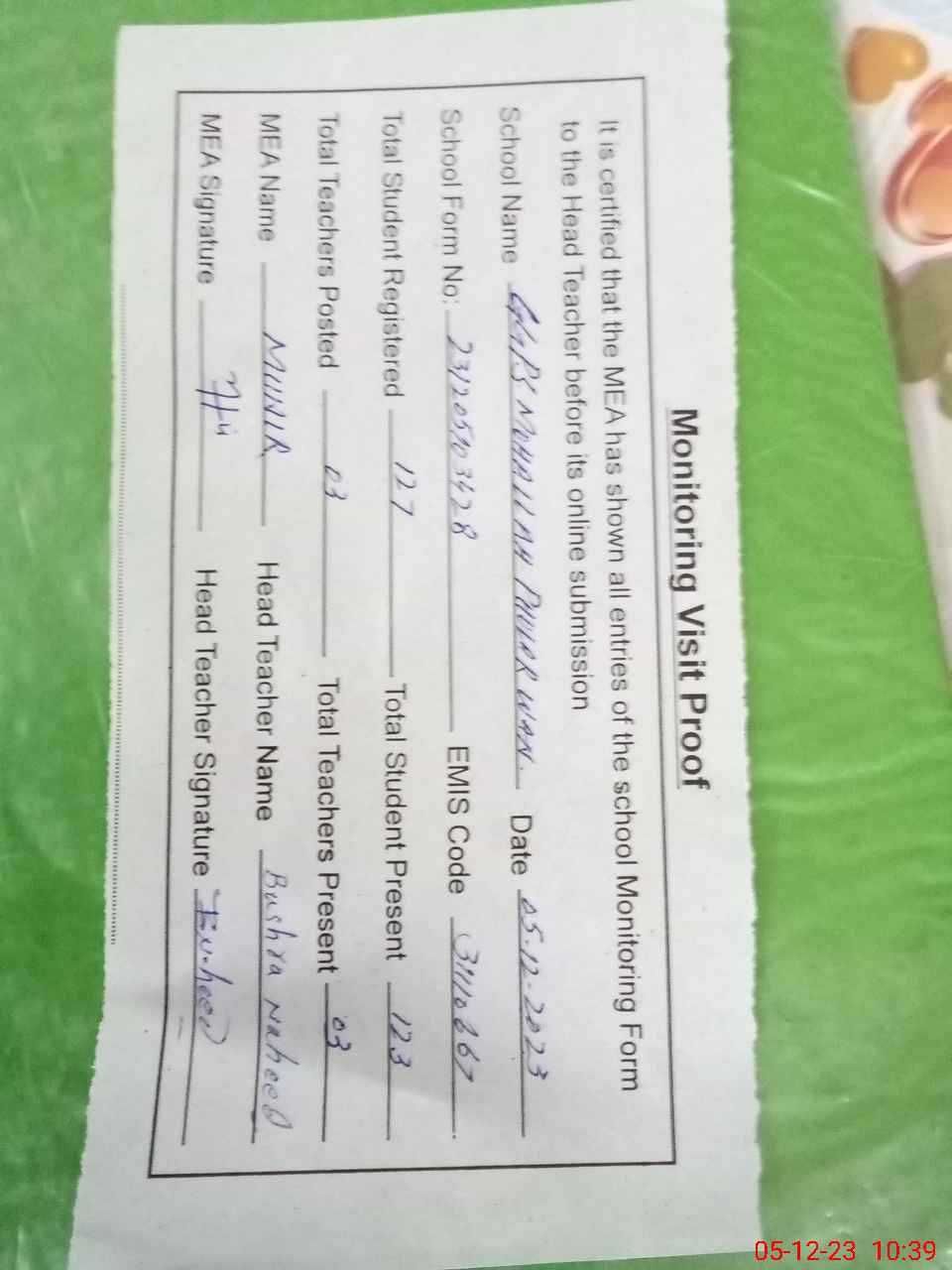| EMIS Code: 31110667 | Name of School: GGPS MOHALLAH PHULARWAN | |||