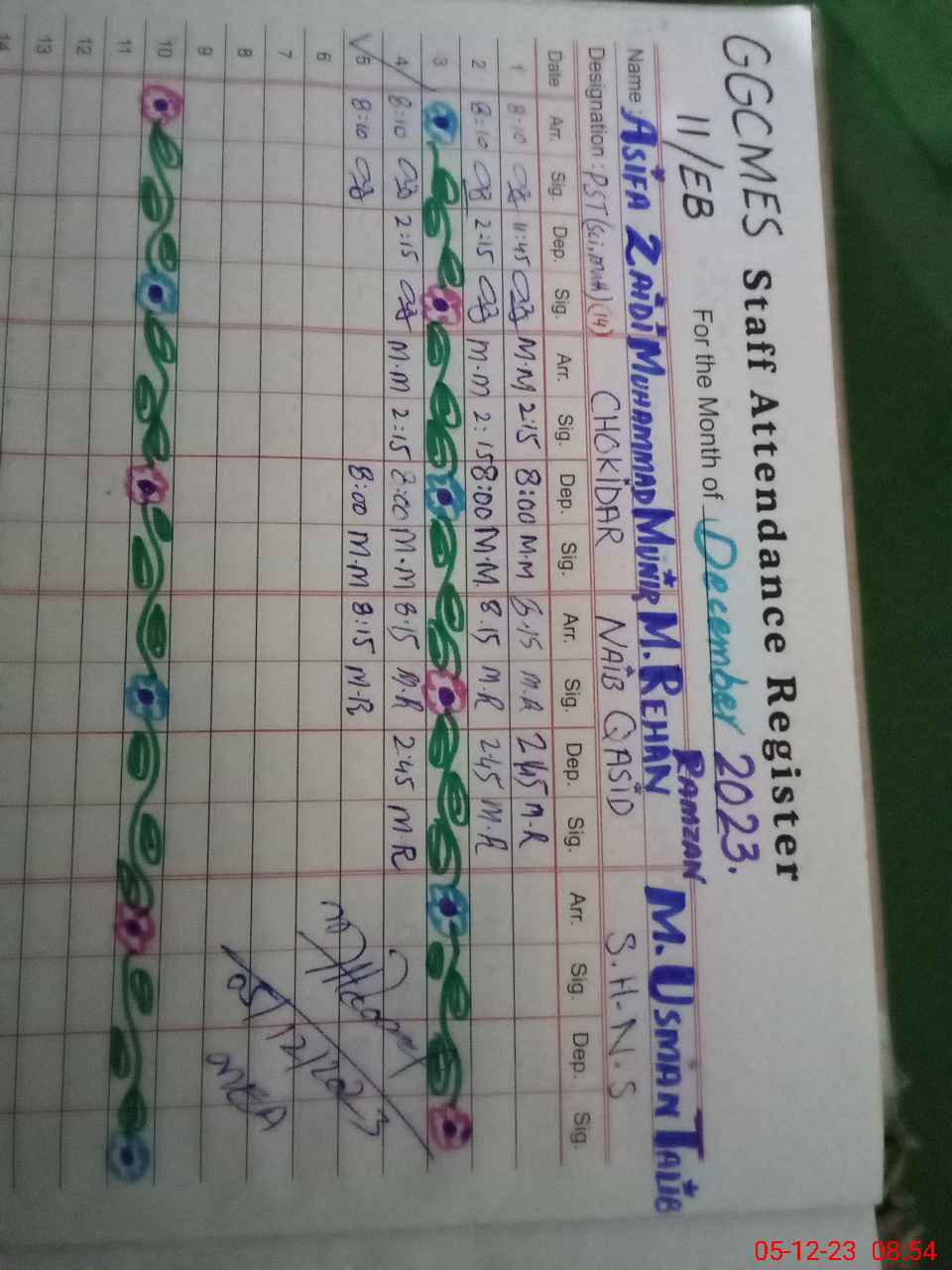 | CNIC | Full Name | Designation | R/C | Absence During Last Calender Month |