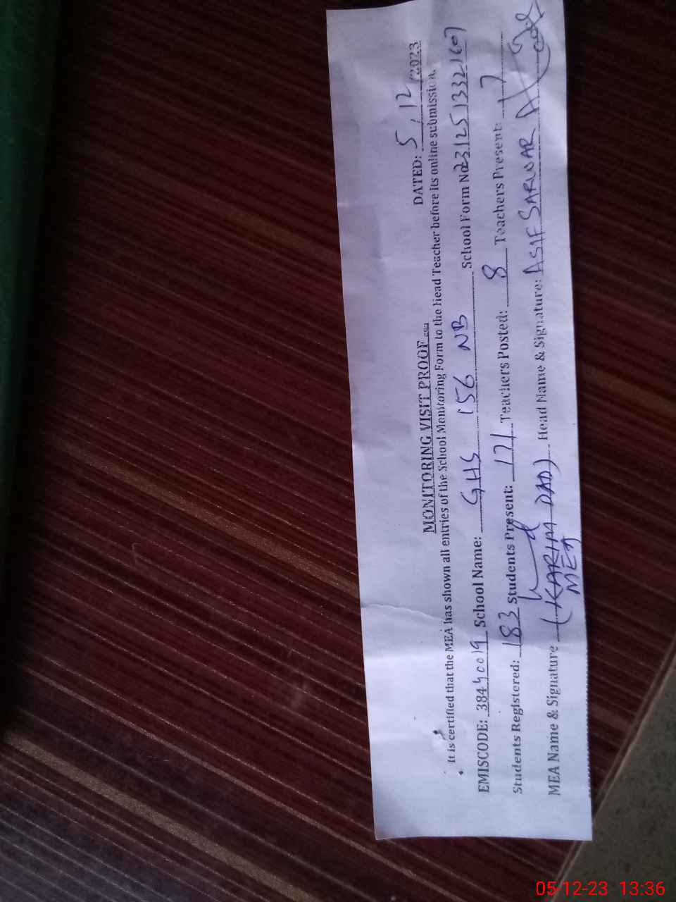 | EMIS Code: 38440019 | Name of School: GHS CHAK NO.156 NB | |||