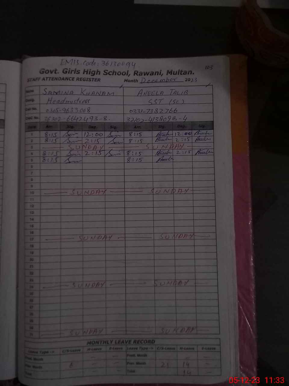 | Name: Ma**** Za**** Designation: (School Headmaster's/Headmistress's) HEADMISTRESS Phone/Cell Number: 03**** |