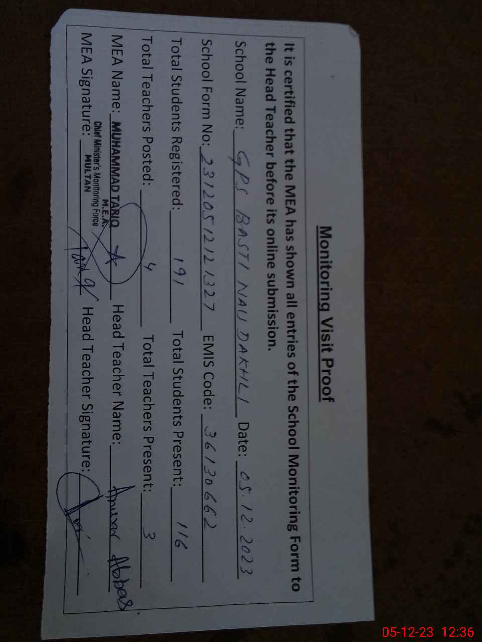 | EMIS Code: 36130662 | Name of School: GPS BASTI NAU DAKHLI | |||