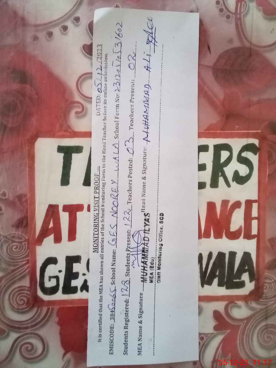 | Attendance Register | Head Teacher | MEA with School | Visit Proof |